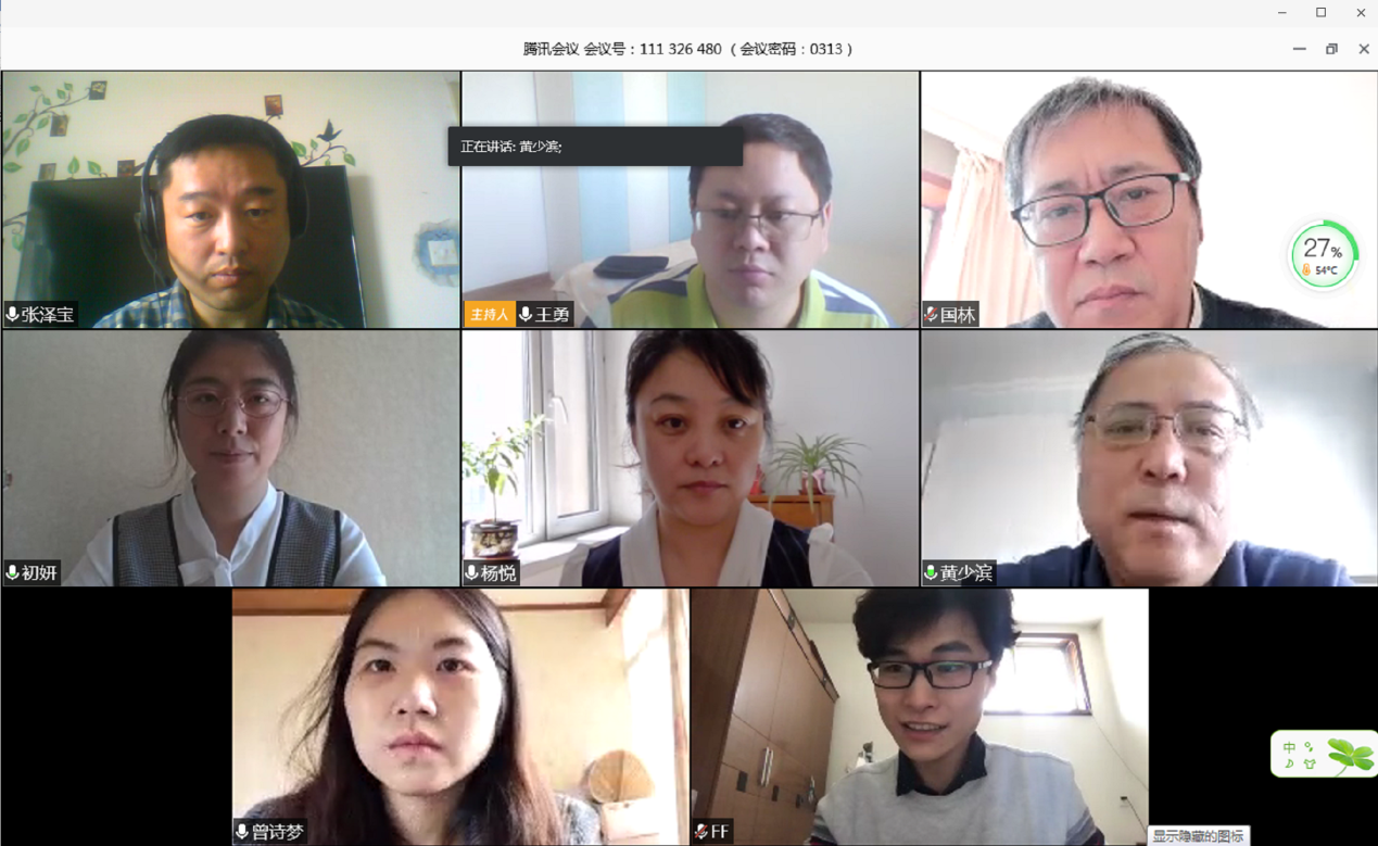 2020年3月13上午,学院疫情防控期间首场硕士研究生学位论文在线视频答辩会如期举行,经答辩委员会无记名投票,曾诗梦、房新振、刘剑、岳鹏程等4位同学全票通过学位论文答辩,祝贺他们!