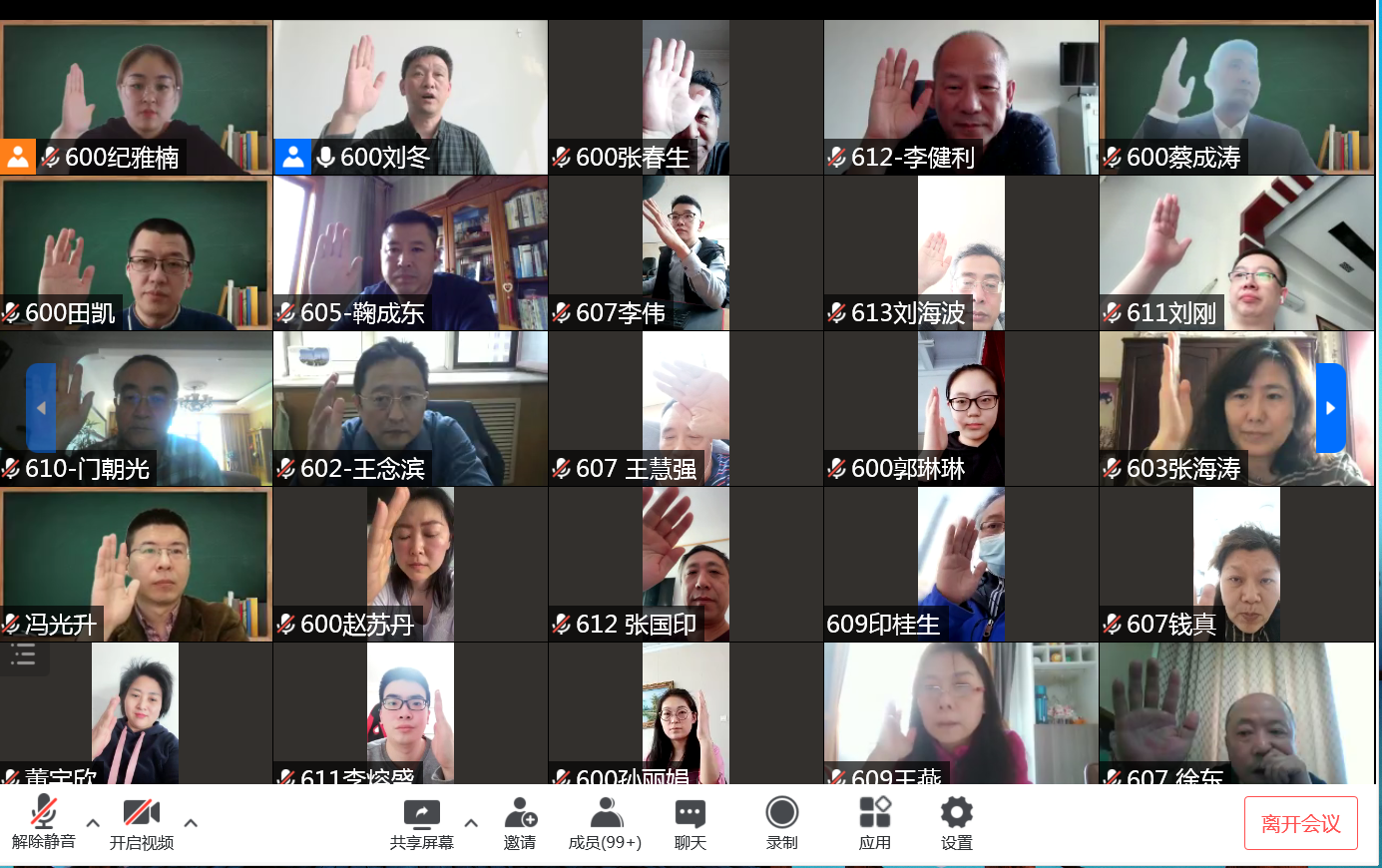 会议最后,全体参会人员开启摄像头已举手表决通过的方式结束与会日程,伟德国际victor·1946源自2021年度教职工大会圆满落幕。