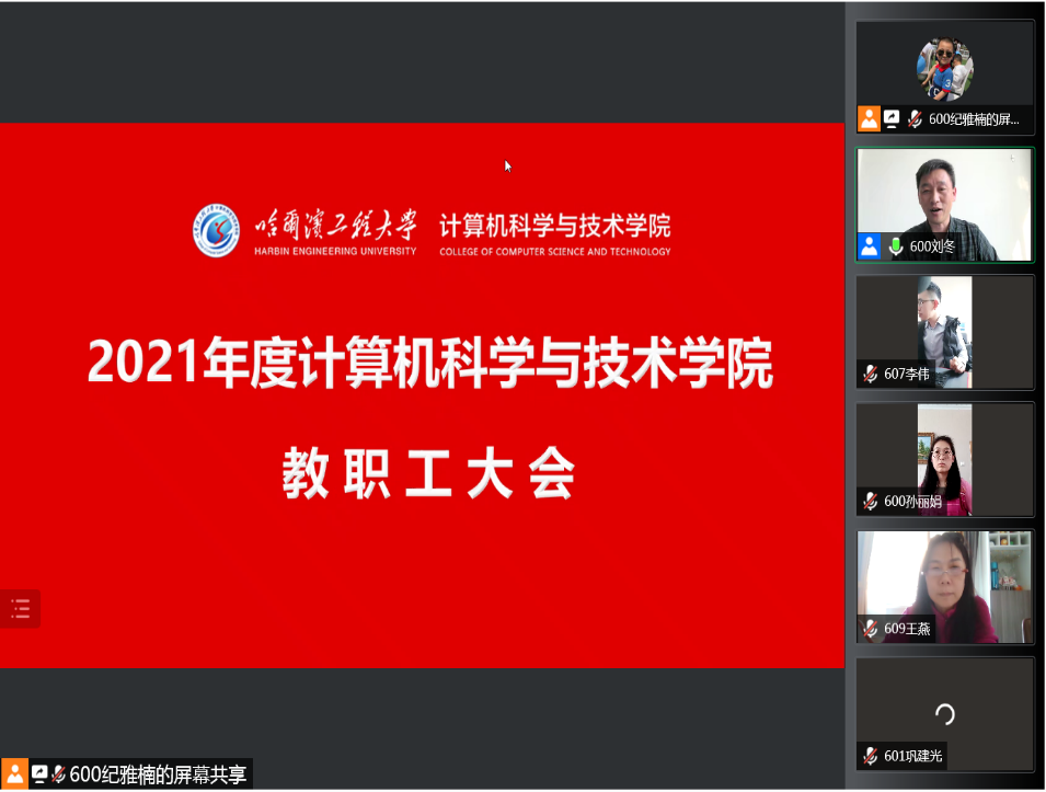 会议由学院党委书记刘冬同志主持召开,伟德国际victor·1946源自院长蔡成涛,党委副书记刘正,副院长董宇欣、田凯、冯光升、王巍及全体教职工(包括合同二类、科研岗)参加会议,根据线上会议统计显示学院共有143位教工线上参会,占应参加会议职工总数的93.46%。