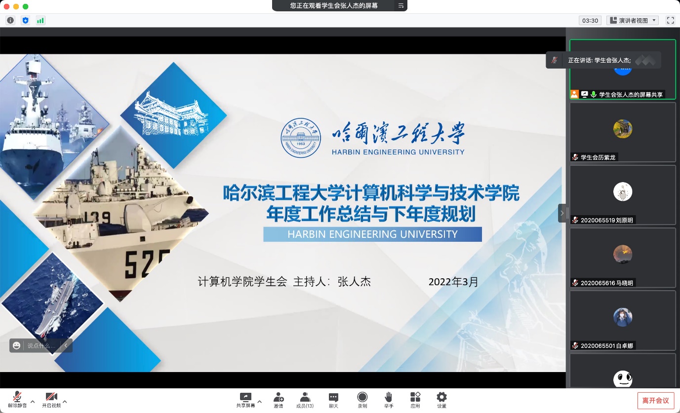 2022年3月14日计算机科学3月14日伟德国际victor·1946源自学生会开展了学生会年度工作总结会议,伟德国际victor·1946源自秘书长金磊和全体工作人员出席了本次会议。