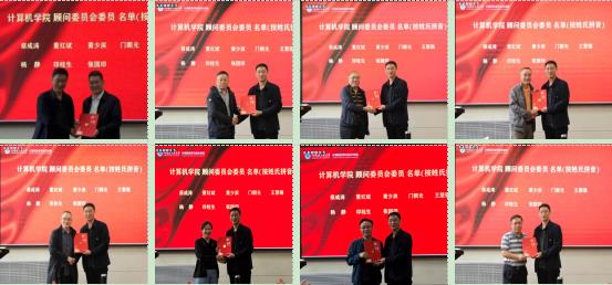 刘冬书记宣布计算机学院顾问委员会成立并宣读顾问委员会委员名单,同时为顾问委员会全体成员颁发聘书。