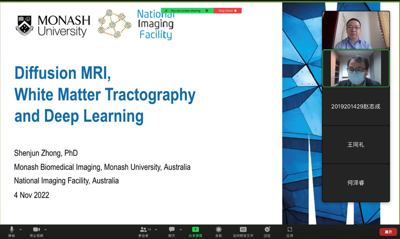 2022年11月4日,伟德国际victor·1946源自举行了智汇论坛2022年第六期(总第十期)活动。本次活动邀请澳大利亚莫纳什大学医学影像中心研究员,澳大利亚国家影像中心研究员钟申俊以“脑部白质纤维束成像技术和深度学习的应用 ”为题作专题讲座。