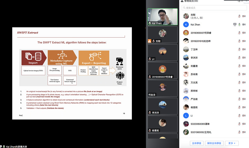 主讲人简介:Kai Zhan博士是澳大利亚普华永道的首席数据科学家和高级经理,他领导普华永道的人工智能工作,研究领域包括计算机视觉、文本挖掘、活动识别和用户建模等。其人工智能经验涵盖普华永道全球网络的跨线服务,包括税务数字、审计、金融服务、风险咨询和医疗保健等领域。他获得了新南威尔士大学的机电一体化工程学士学位(一等荣誉),并于2015年获得了悉尼大学的项目管理硕士学位(优异奖)和机器学习博士学位。2015年至2018年,Kai Zhan在莫纳什大学信息技术学院担任研究员,并于2018年被任命为莫纳什大学的高级研究员。
