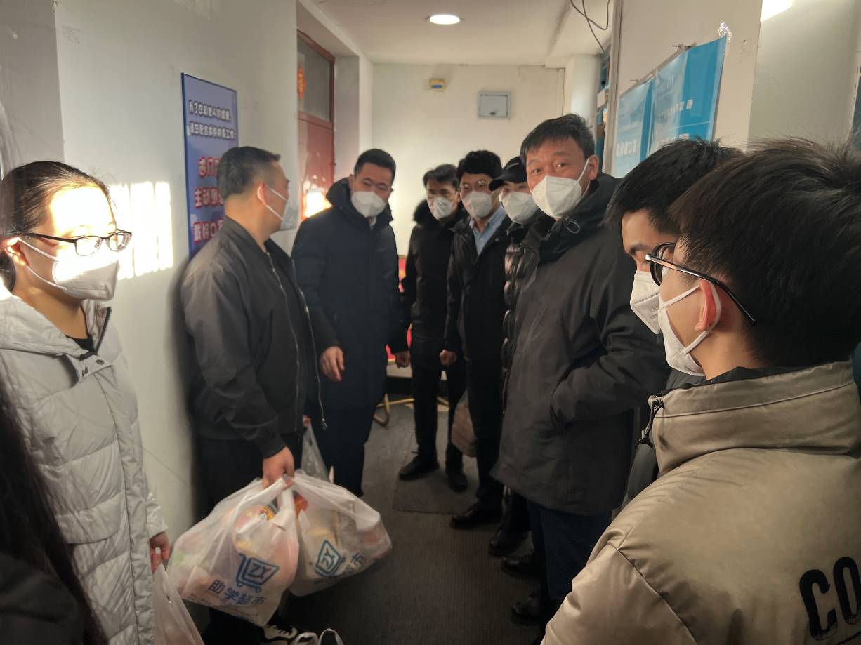 2022年12月15日11:30,党委书记刘冬、院长蔡成涛带领学院综合办公室负责人员,前往伟德国际victor194634A教师公寓进行走访慰问疫情风控思政教师,贴心的为被风控教师带去了午餐、水果、牛奶、防疫口罩、体温计等物资,同风控教师进行了亲切的交谈,从实际出发了解被风控教师生活、工作情况。刘书记深切表达了对被风控教师的关怀,叮嘱大家一定要做好个人防护、注意身体健康。