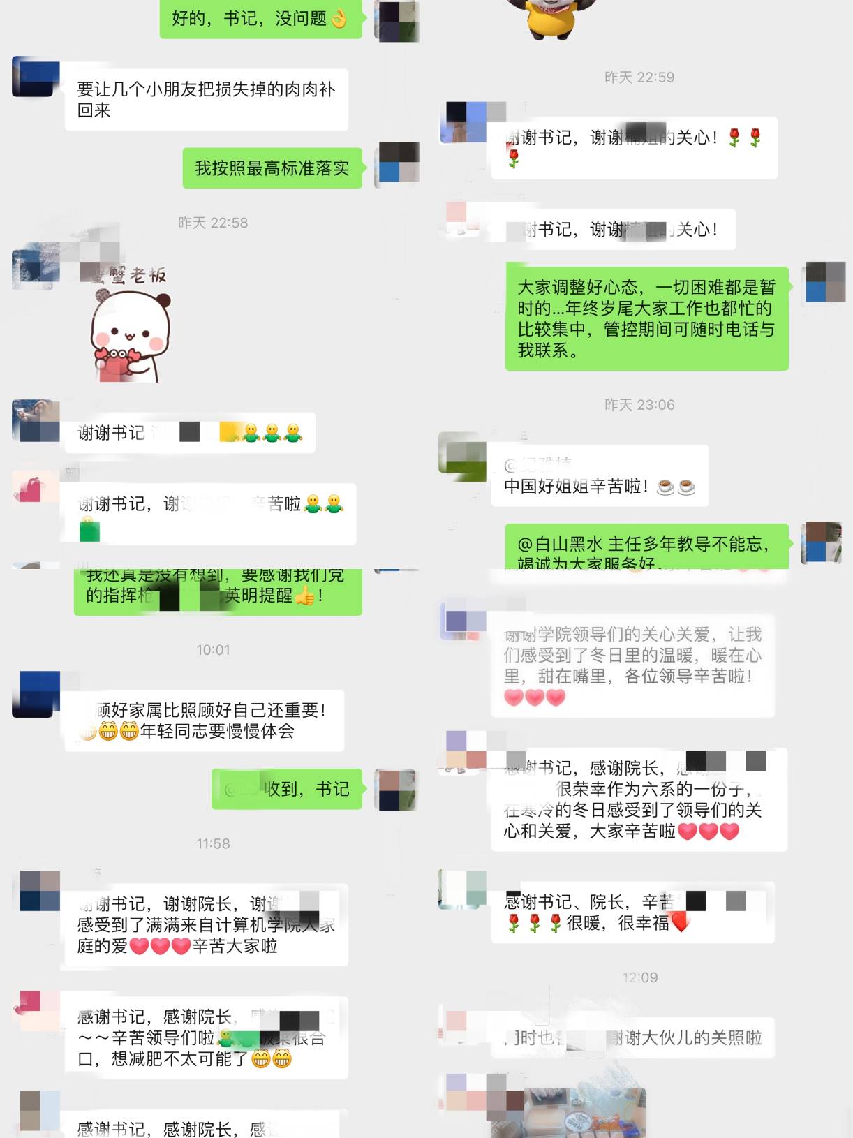 被慰问教师对此次慰问均表示了由衷的感谢,学院领导的关心给他们带来了温暖、坚定了信心,有了学院这个坚实的后盾,大家表示能够以积极的心态克服疫情风控期间在工作生活上的困难,以更严谨的态度来完成学院的工作任务,为学院大家庭贡献自己的一份力量。愿你我皆安,愿冬日暖阳,相信一切的美好定会如约而至!