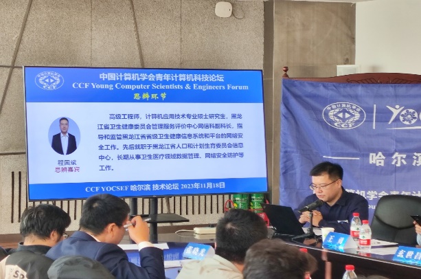 2023年11月18日上午,学院青年科协在启航活动中心,协办了由中国计算机学会(CCF)主办,CCF YOCSEF哈尔滨学术委员会承办的技术论坛“数据要素市场化配置,路在何方?”。本次论坛邀请了来自高等院校、科研院所、行业企业等不同行业背景的30余名专家学者从多个角度进行了思辨和讨论。本次论坛由学院青年科协成员王勇、玄世昌老两位师担任执行主席,东北林业大学张春龙老师担任线上主席。