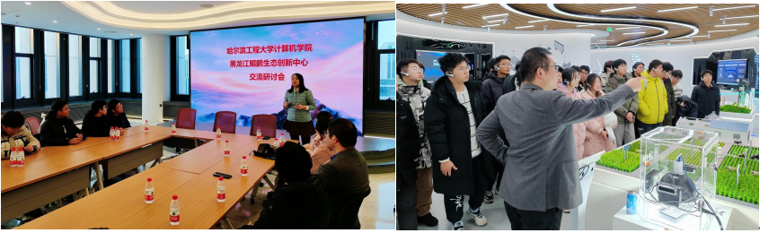 活动第二站,全体人员赴创新中心参观学习,创新中心徐超总监对中心整体情况做了介绍,并讲解了华为公司在芯片领域的整体布局与科研成果。然后在创新中心的展馆内,技术负责人王欢对公司在黑龙江的人工智能与计算全产业链布局做了详细介绍,并为全体人员介绍了目前华为与其他企业在智慧城市、智能制造、智慧医疗、智慧农业、自动驾驶等方面合作取得的科研成果。