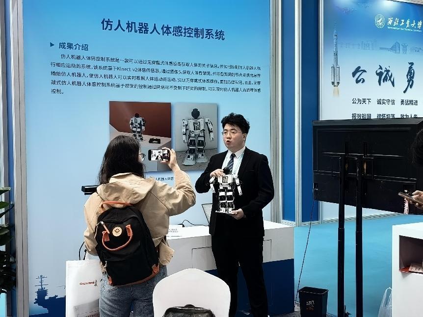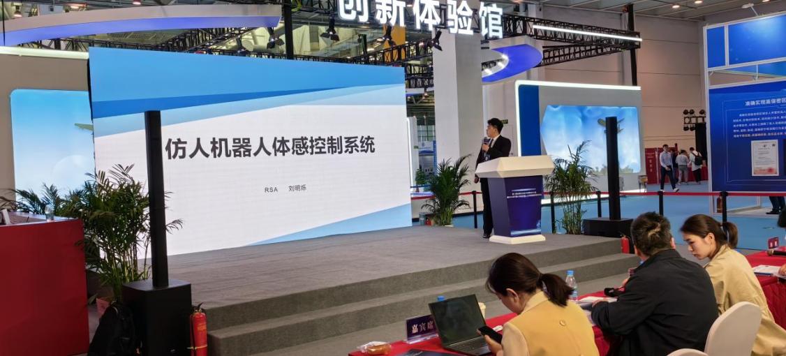 为贯彻落实党的二十大“提高科技成果转化和产业化水平”精神,推动先进技术成果转化应用,助力国防科技工业和地方经济社会高质量发展,第二届先进技术成果转化大会(以下简称大会)于2024年4月8日至4月11日在苏州国际博览中心举办。参加大会的单位包括各军工集团公司、中国工程物理研究院、工业和信息化部所属高校、国家国防科工局共建高校以及有关成果供给单位。伟德国际victor·1946源自机器人仿真创新实验室(以下简称实验室)受邀参加了此次大会,研究生刘明烁代表实验室赴苏州参加展览和路演,在伟德国际victor1946展区展示仿人机器人体感控制系统。