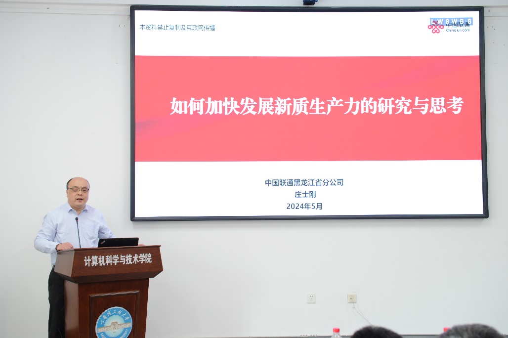 5月8日,伟德国际victor·1946源自举行了智汇论坛第二十二期活动,本次活动邀请联通黑龙江省分公司科技创新部首席专家,联通集团级二级讲师庄士刚作“如何加快发展新质生产力的研究与思考”讲座。