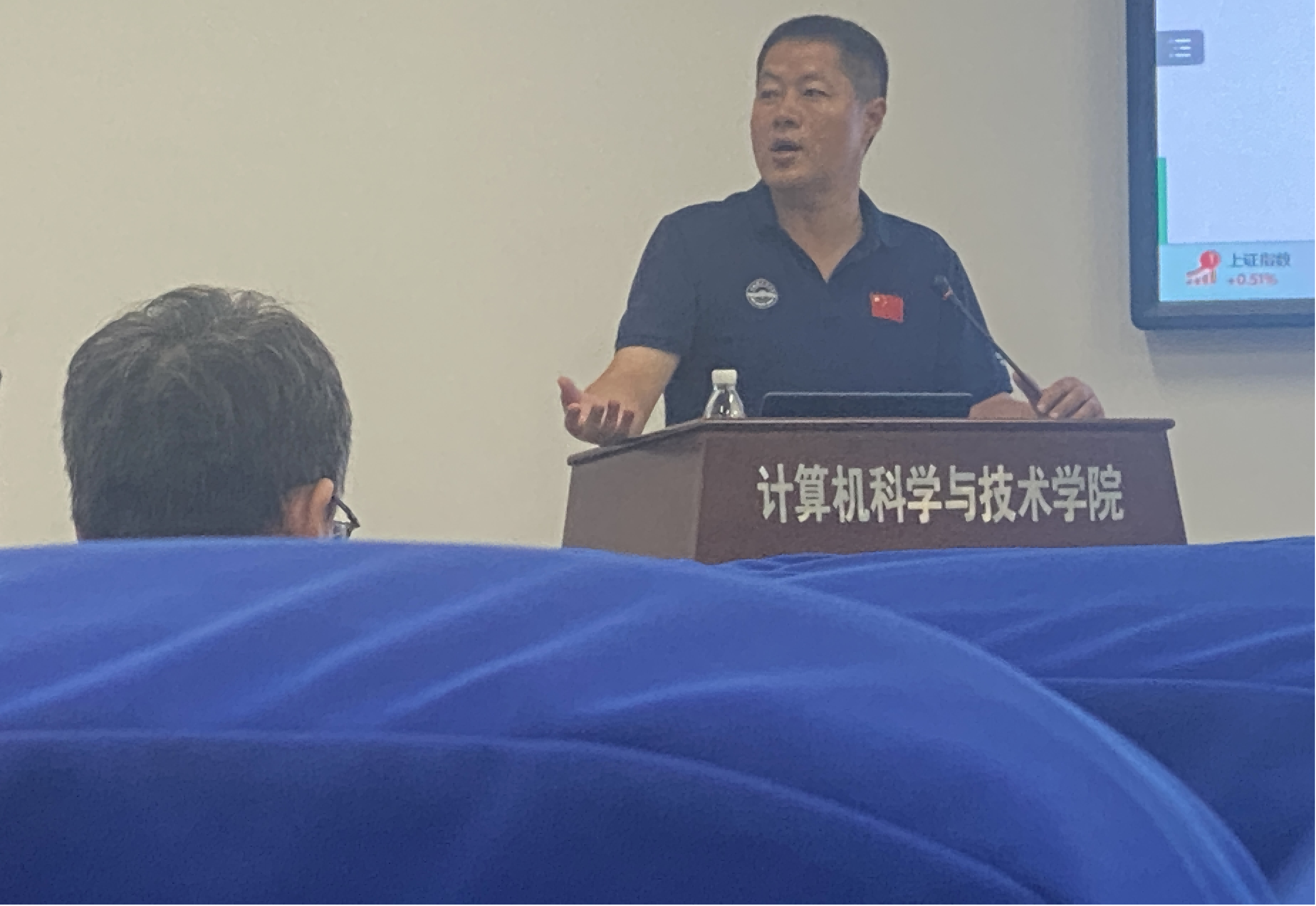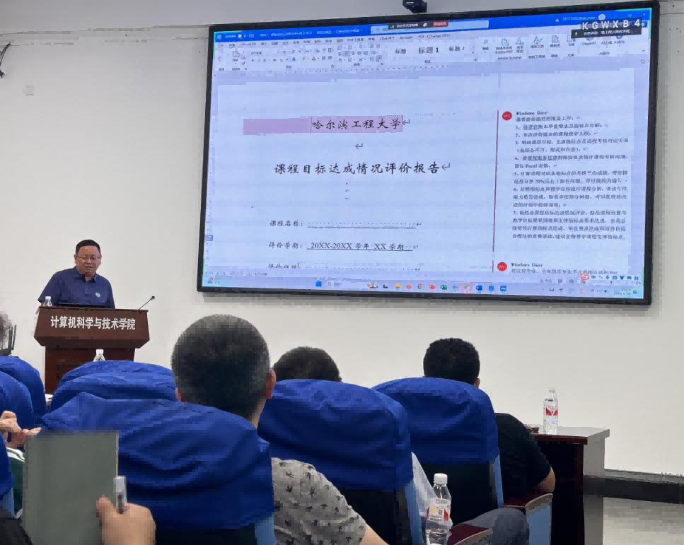 课程负责人代表王勇发言。他分享了本科课程目标达成情况评价报告的撰写经验。王勇认为,课程组要确保审核评估所有文件的完整性和规范性,总结每一轮教学存在的问题以及改进情况,以评促建,以评促改。