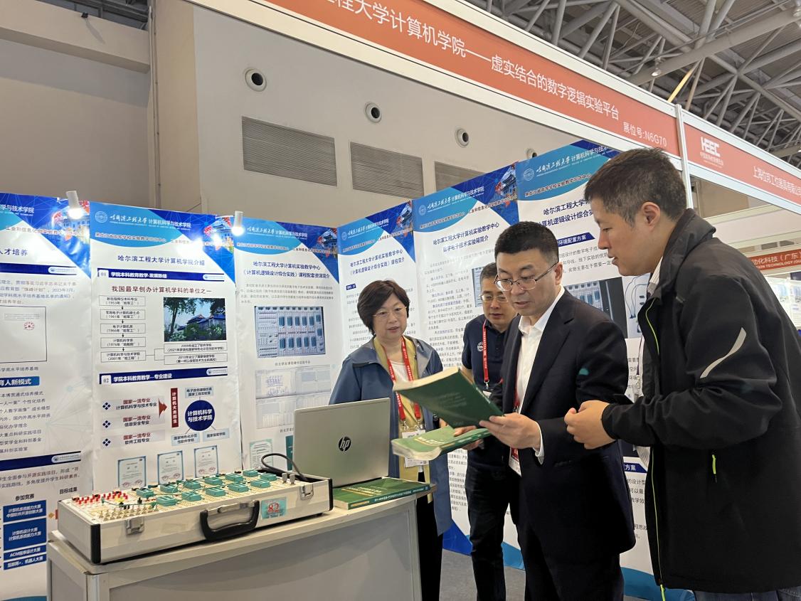 学院面向芯片自主化设计国家战略需求,立足于新工科和拔尖人才培养,积极推动计算机硬件实验课程建设和虚拟仿真实验技术创新。本次参展将进一步加强学院在计算机实验教学领域核心技术成果的推广应用,为计算机实验教学技术创新发展和计算机专业人才培养贡献哈工程力量!