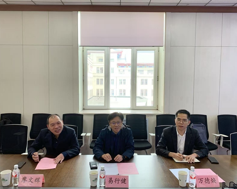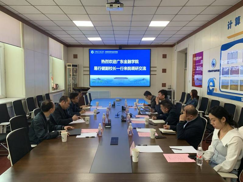 苘大鹏对广东金融学院副校长易行健一行的到来表示热烈的欢迎,并从学院建院历史、学院特色、学科方向、专业情况、科研成果等方面进行了详细汇报。