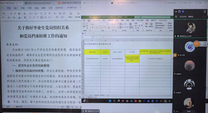 为贯彻落实中央八项规定精神,强党性、转作风、提能力,扎实做好2025届毕业生党员教育管理工作,计算机学院严格遵循伟德国际victor1946组织部关于毕业生党员组织关系转接及党员档案管理的相关要求,系统部署相关工作。学院将强化毕业生党员离校教育,深化党性锤炼;规范党员档案管理流程,提升档案管理规范化水平;严密组织关系转接与档案材料交接转递工作,确保程序严谨、责任到人,以务实高效的工作作风,推动毕业生党员组织关系转接工作平稳有序开展,为毕业生党员踏上新征程提供坚实组织保障,6月16日,计算机科学与技术学院召开关于2025届毕业生党员组织关系转接与党员档案归档专题培训会。会议由计算机学院专职组织员赵苏丹组织,本科生学生党支部书记、研究生党支部书记、党员代表参会。