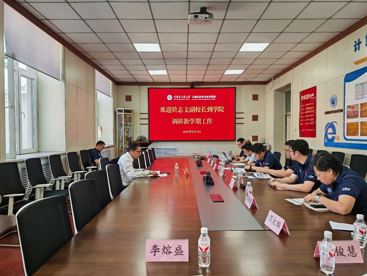 於志文副校长充分肯定了学院上半年取得的各项成绩,并结合学校秋季学期工作会议精神,对学院下半年的重点工作提出要求:一是把握人工智能发展大势,整合校内外优势资源,切实推动学科高质量发展;二是要高质量完成学院和主建学科“十五五”规划的编制工作,在国家奖、重大重点科研项目、海内外优秀人才引进实现突破;三是学院党委要加强督查督办,确保各项工作落实落细、取得实效。