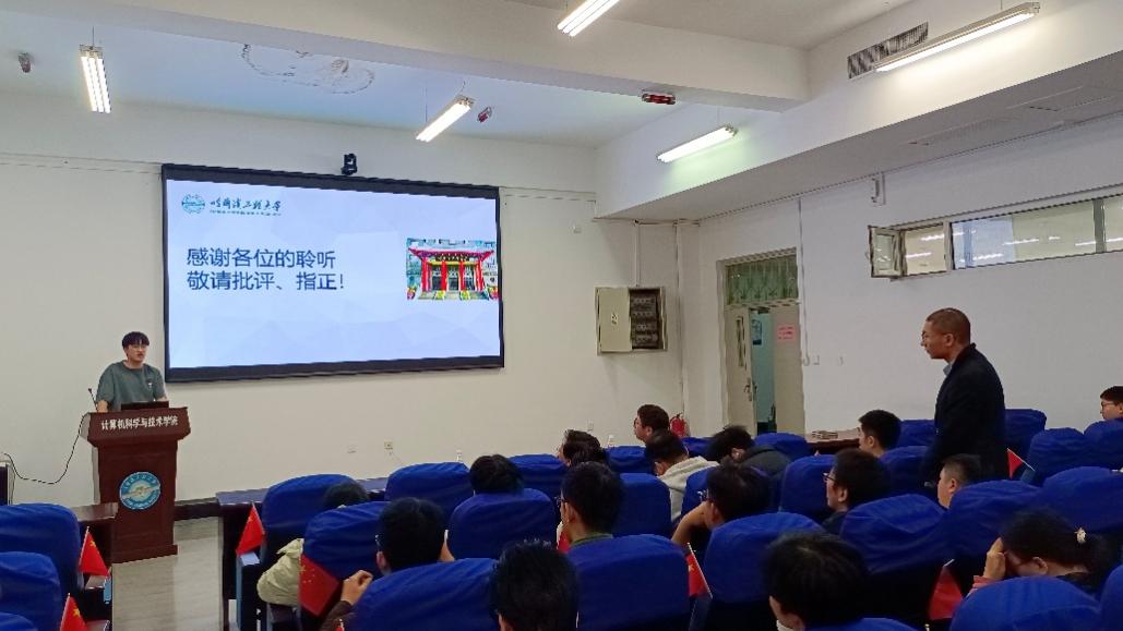 四位研究生的报告内容翔实、视角新颖,充分展现了哈工程研究生扎实的学术功底与活跃的创新思维。在最后的研讨交流环节,现场气氛热烈。与会师生围绕报告内容踊跃提问,就技术细节、学科交叉可能性、未来合作方向等进行了深入而坦诚地探讨。思想的火花在交流中迸发,合作的契机在对话中萌芽。