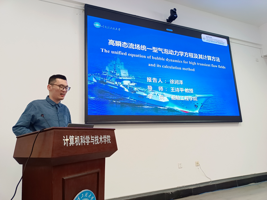 船舶工程学院流固耦合技术研究团队的徐润泽首先登场,就其团队在流固耦合机理、数值模拟及工程应用等方面的研究进展进行了汇报,展现了基础研究与工程实践的紧密结合。紧接着,该学院舰船抗爆与水下发射技术“兴海”学术团队的付志强,围绕舰船结构抗爆防护与水下发射关键技术等挑战性课题,介绍了团队取得的创新成果与未来研究方向。