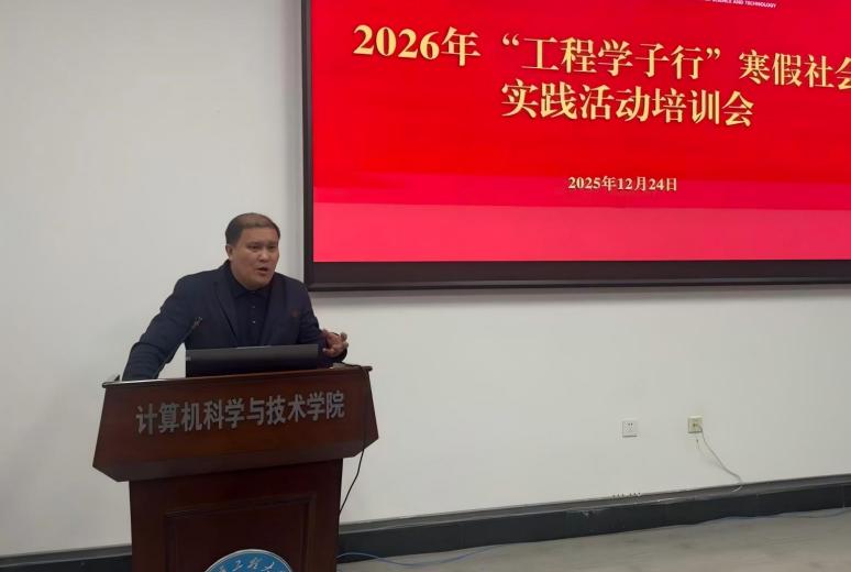 近日,计算机学院在21B 4127会议室组织召开2026年“工程学子行”寒假社会实践活动培训会。学院教学副院长王巍、体系结构系主任陈志远,本科教育办公室教师、本科生孙健胤及报名学生团队参会。